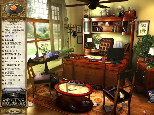 Als weitere Innovation darf man ruhig die fehlenden Vokale sehen. Was das sein soll? Die zu findenden Gegenstände stehen zu Beginn jedes Abschnitts ohne Vokale da (wobei lustigerweise Y hier nicht zu den Konsonanten zählt). Erst wenn man die entsprechenden Tasten von Jessicas Schreibmachine innerhalb des jeweiligen Bildes findet, füllen sich die Suchbegriffe so nach und nach und man erkennt, was nun eigentlich abgefragt wird. Ohne dem kann man natürlich raten und schätzen, was die Worte bedeuten. So kommt ein kleines, spassiges Knobelelement hinzu.