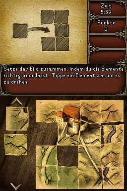 Um das Spielgeschehen etwas aufzulockern wurde eine Hand voll Minispiele eingestreut, wobei diese sich Quantitiv sehr in Grenzen halten, dann aber für netten Kurzweil sorgen. Lediglich das erste Spielchen (eine Karte zusammensetzen, siehe Screenshot unten) hat sich als kleiner Frustfaktor entpuppt. Man soll die Kartenteile durch Berührung mit dem Touchpen drehen, sie dadurch aber auch an die richtige Stelle bewegen, doch oft hat die Eingabe einfach nicht oder falsch reagiert. Die anderen Minispiele gehen da schon lockerer von der Hand und machen durchaus Laune.