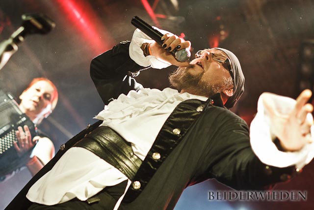 Die Band trat auf die Bühne und sie stellten sich kurz vor besser gesagt sie nannten kurz ihren Namen den ich leider zu Anfang kaum verstanden hatte. Im weiteren Verlauf des Konzertes wiederholten Sie ihn: Punch´n´Judy heißen sie. So Sprang die Band im Piraten Outfit hin und her und sprühten vor Energie. Sie sangen von Trollen, Piraten und anderen mythischen Wesen.