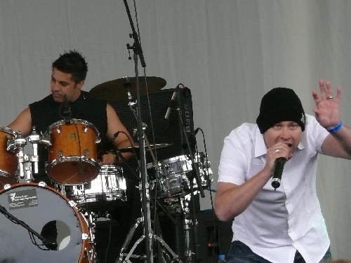 Mit dem Bändchen ums Handgelenk machte ich mich auf die Suche nach meinen Freunden, machte dabei einen Streifzug übers Festivalgelände wo Kloq vor überraschend viel Publikum für diese Uhrzeit eine recht coole Show hinlegten. Ein paar Fotos nahm ich auch gleich mit, der nächste Regenschauer und meine Sehnsucht nach meinem geliebten Frank ließen mich aber bald wieder abziehen. Wer was über Kloq erfahren will kann dies auf deren MySpace-Seite tun.