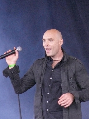 Hier wirds wieder etwas schwierig. Wer meine Berichte aufmerksam verfolgt weiß wohl, daß ich mit Electro auf einer großen Festival-Bühne nicht oft was anfangen kann. Rotersand sind da so ein Beispiel: Vom "Band" (bzw CD/Festplatte) gehören sie für mich zu den größten der EBM-Szene, live ists aber eher gehobener Druchschnitt. Oder anders ausgedrückt, ich muß in der entsprechenden Stimmung zum mittanzen sein, aber als reiner Beobachter, wie ich es bei diesem Gig hier war, kommt auf Dauer etwas Langeweile auf. Das sahen zum Glück die mehreren Hundert Fans anders, die im Innenraum des Amphitheaters ein wahres Tanzfest für die Band veranstalteten, und zu Hits wie Lost einfach nicht zu bändigen waren.