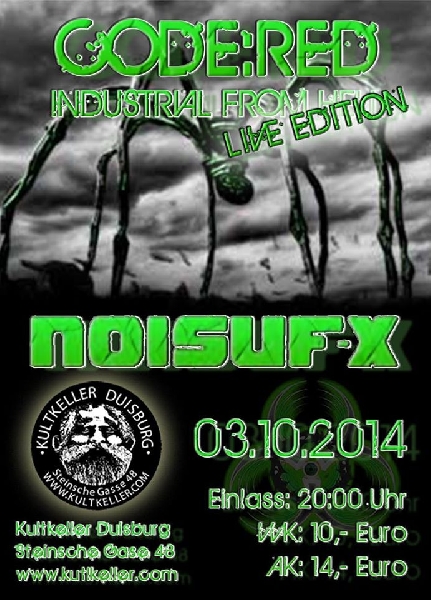 Am Freitag, den 03.10.2014, sind Noisuf-X zu Gast im Kultkeller, am 07.11.2014 kommen XotoX vorbei. Beide Konzerte beginnen um 20 Uhr, im Anschluss findet dann die "Code: Red" als Aftershow-Party statt.